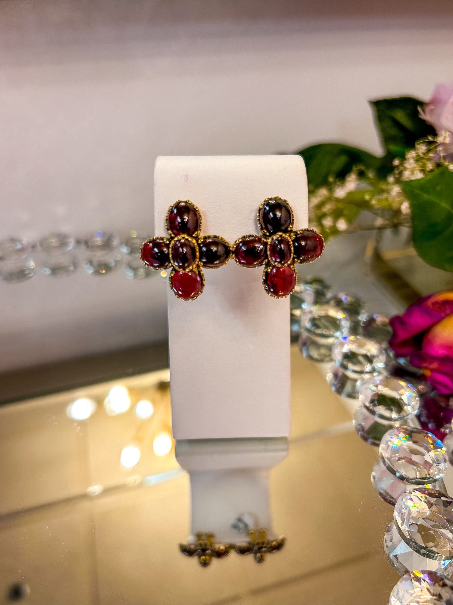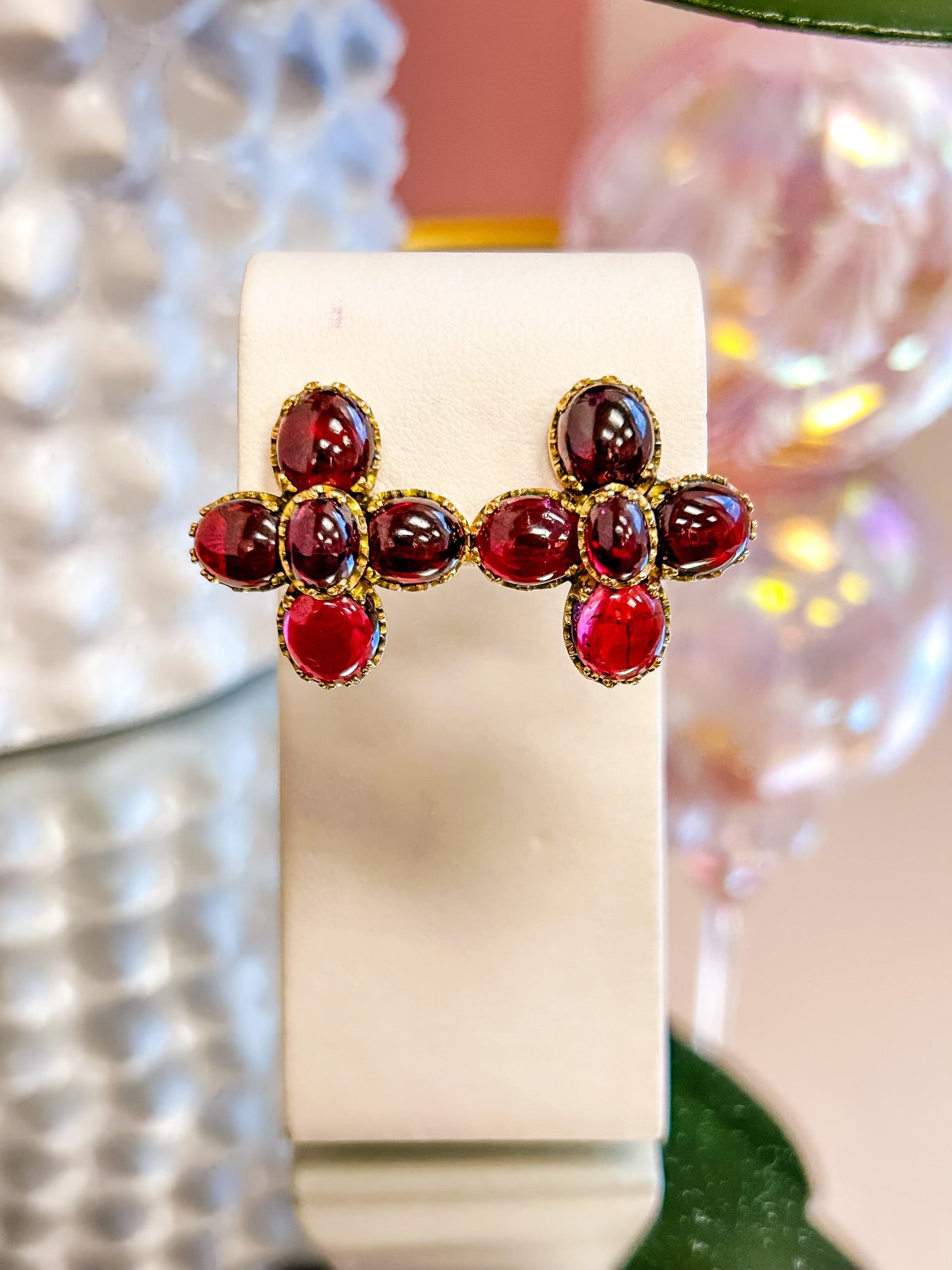 18K Garnet Omega Back Earrings