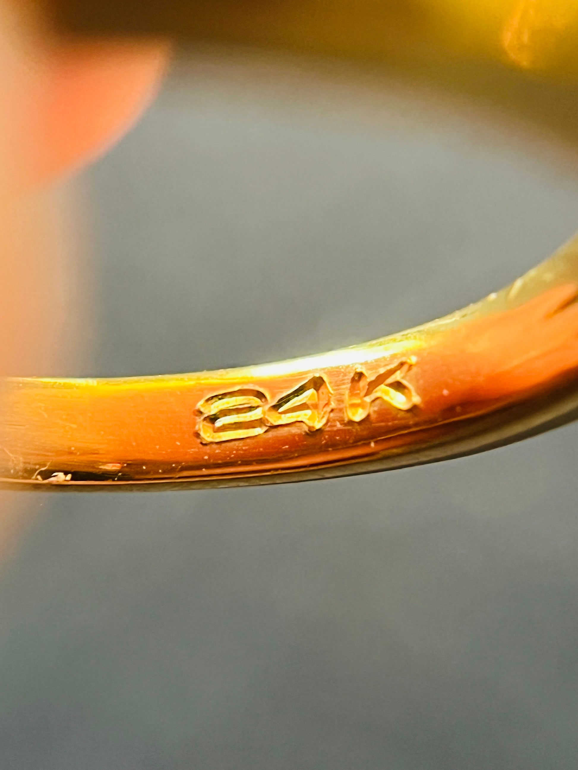 Condition Statement: This items in excellent used condition. The gold and stone have a high polish. Marked 24k.