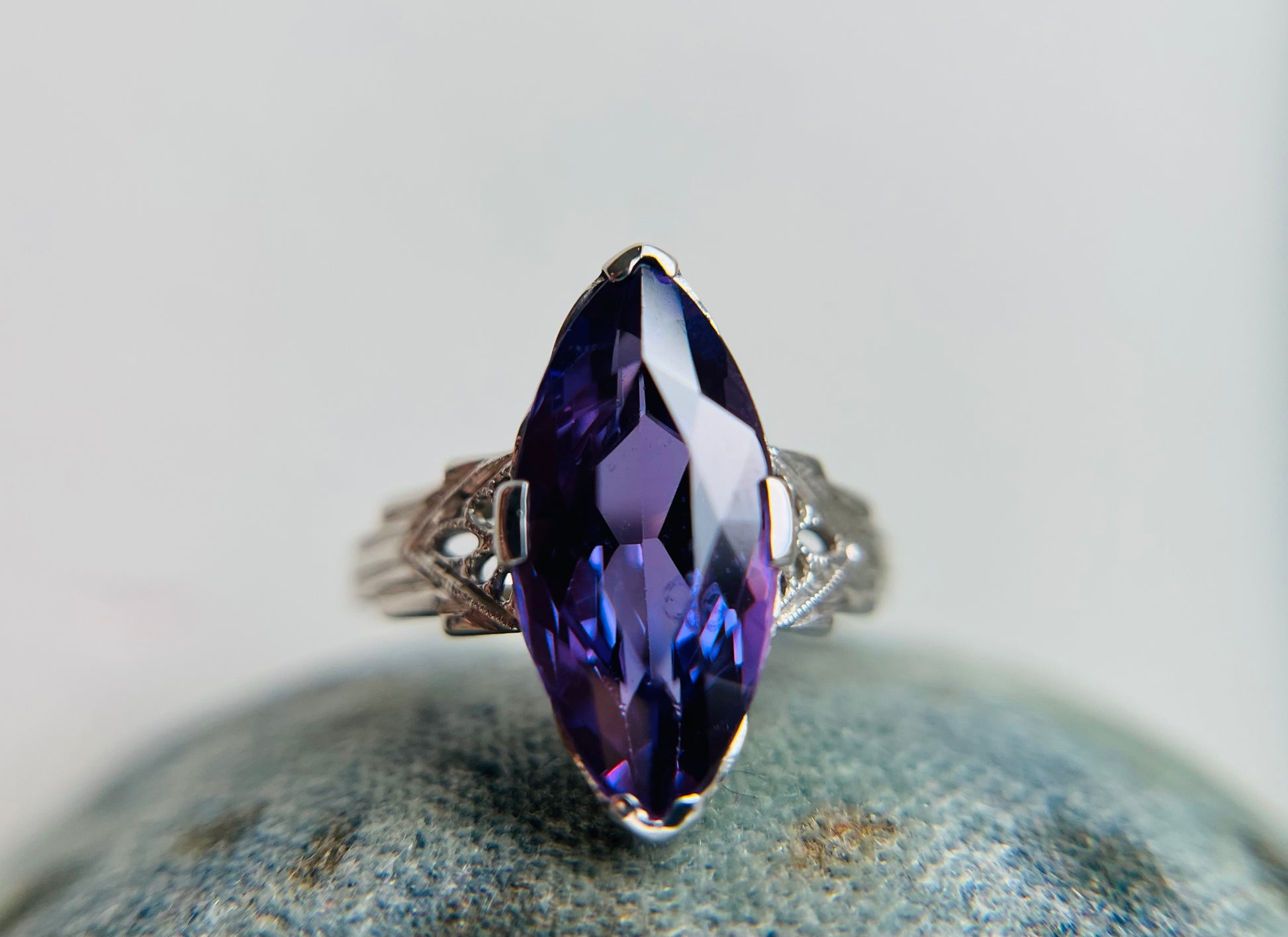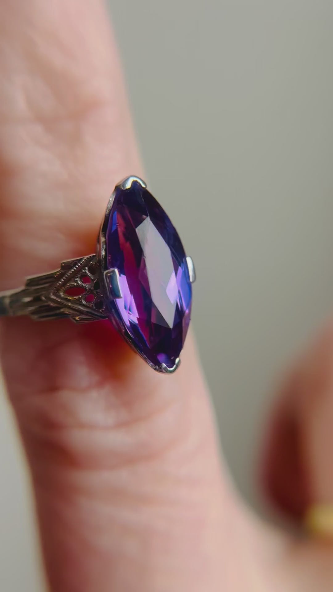 Antique Art Deco Filigree Amethyst 14k White Gold