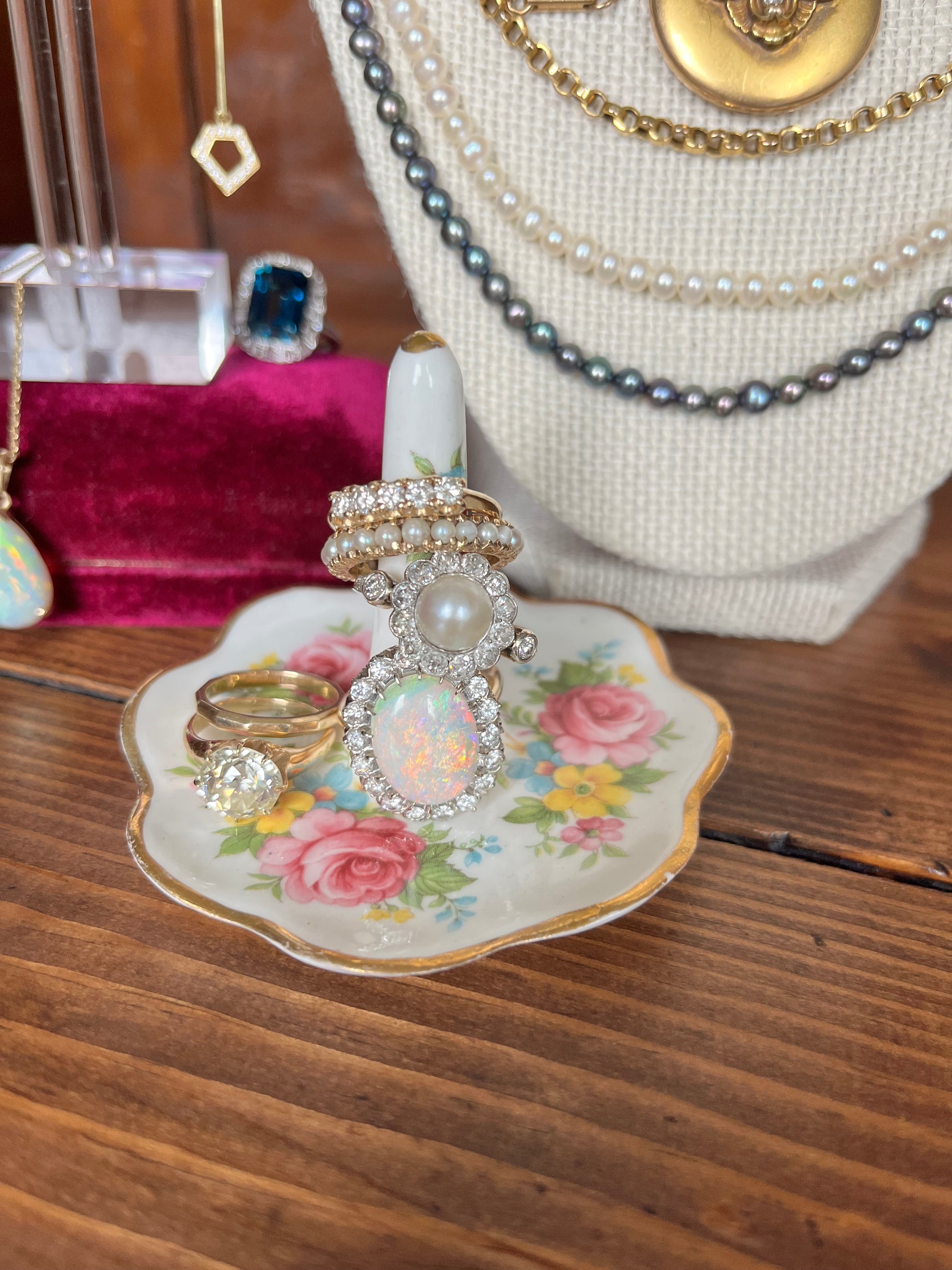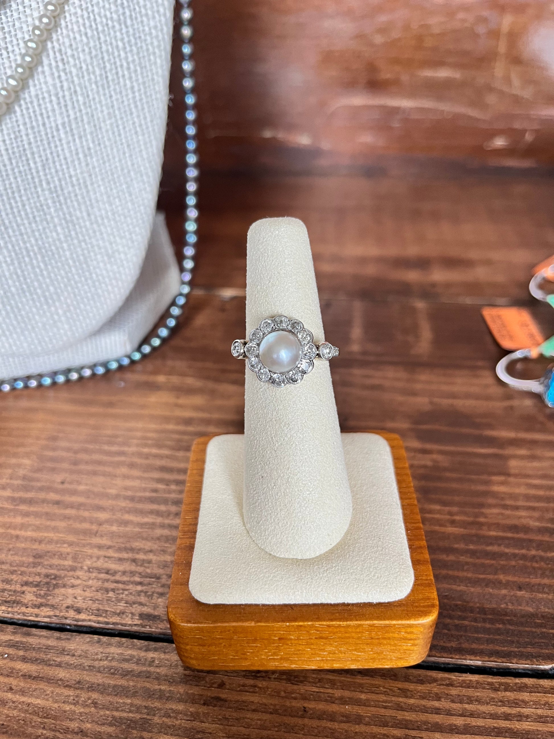 This awesome antique sparkler, made with a platinum band, old mine cut diamond, and a single pearl, is sure to size 6 your style. Get your hands on these stunning rings!