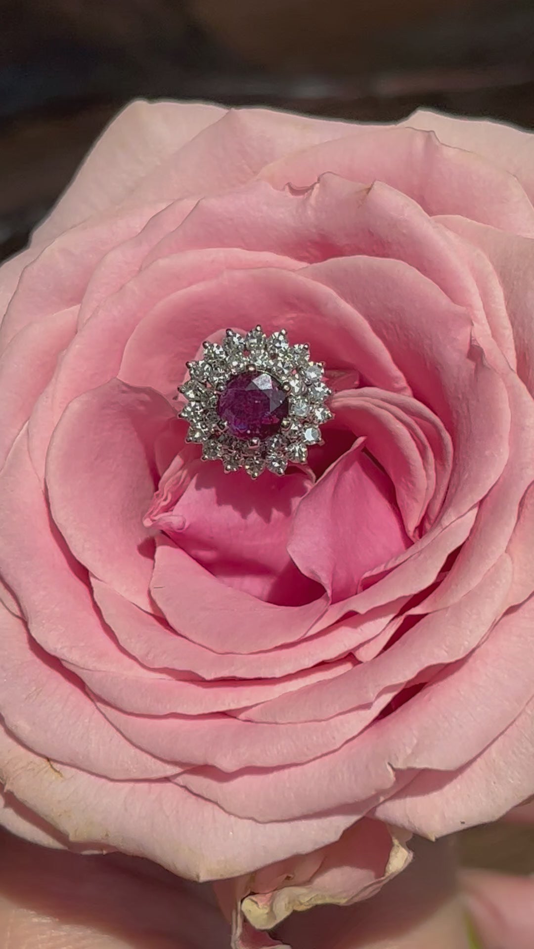 Ruby and Diamond Double Halo Ring