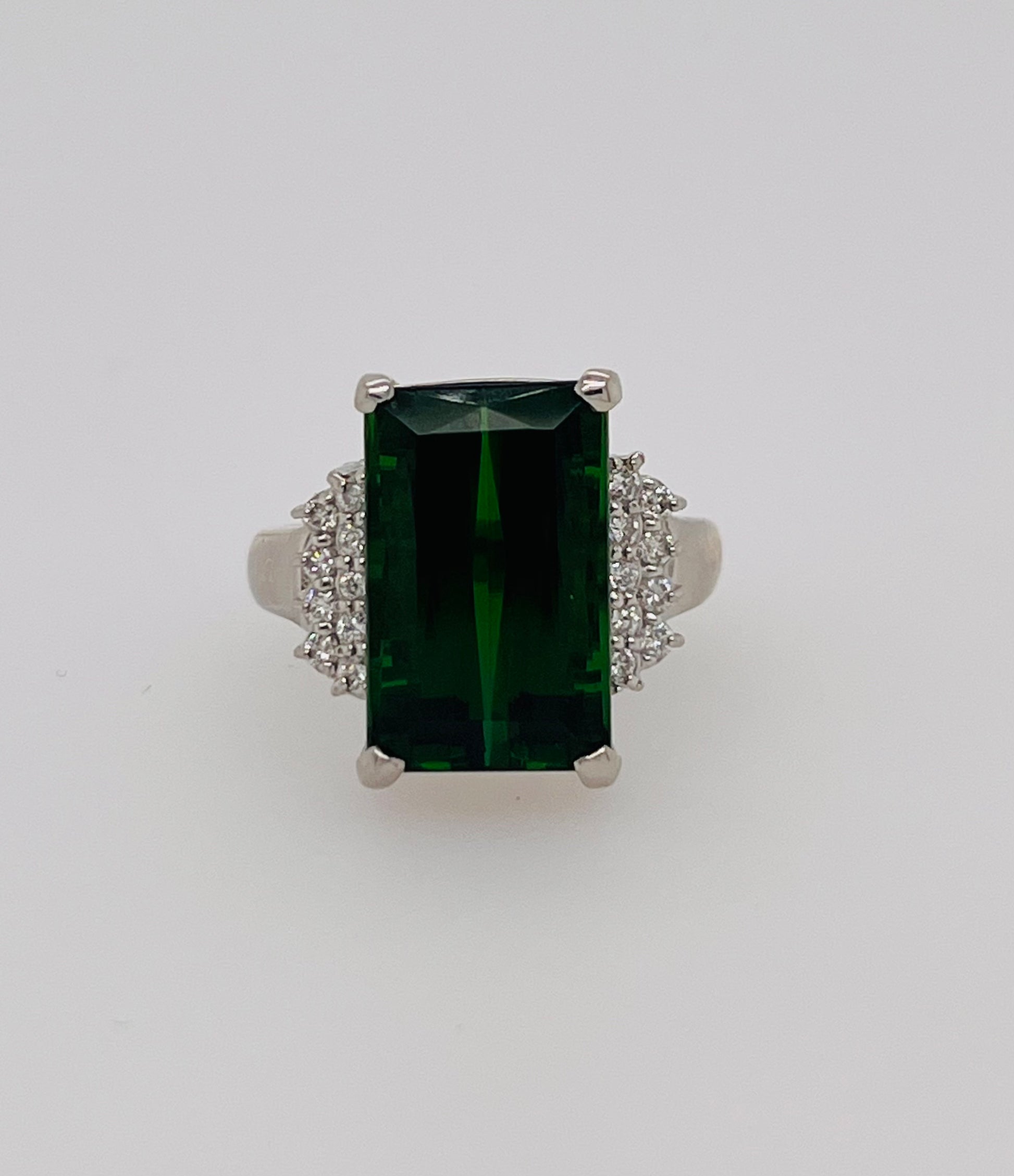 Stunning Platinum Green Tourmaline and Diamond Statement Ring