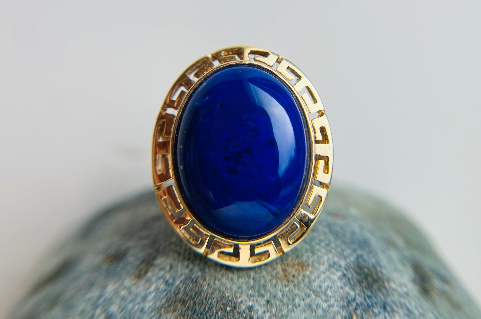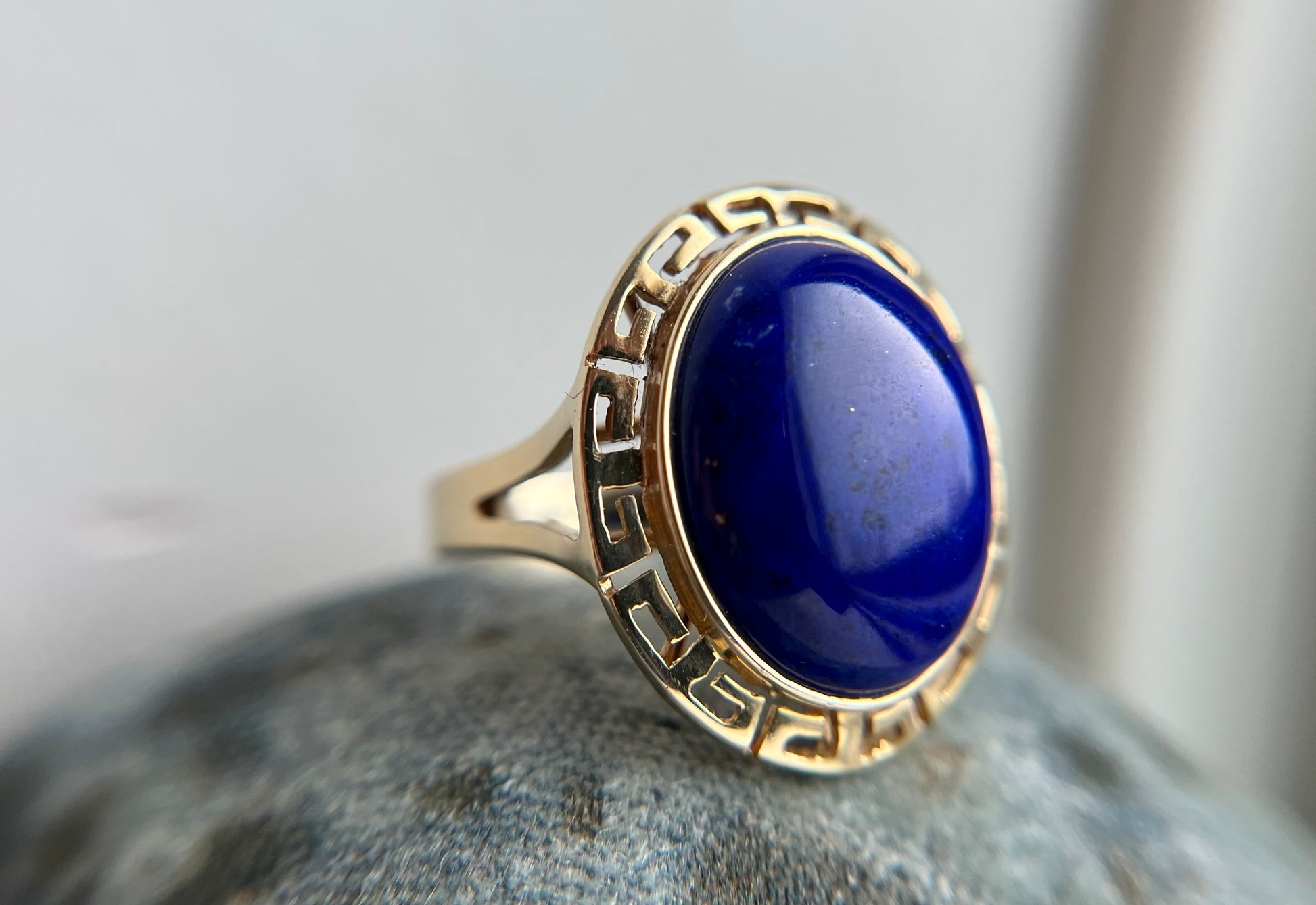 Vintage Greek Key 14k Yellow Gold and Lapis Ring