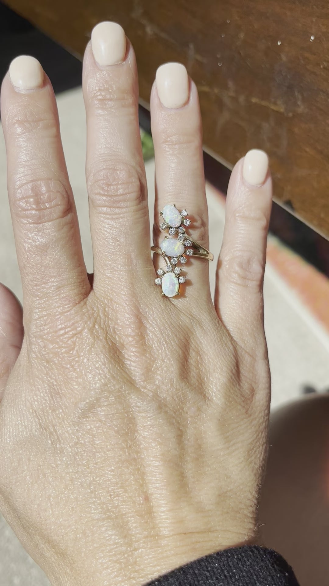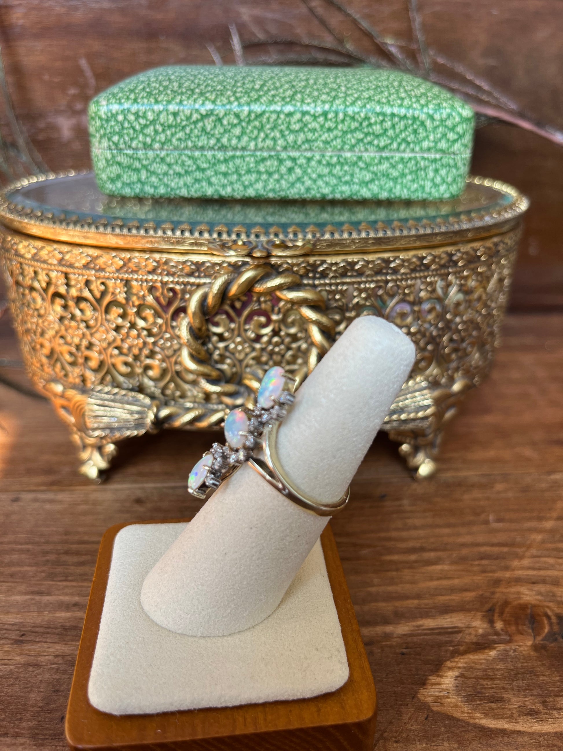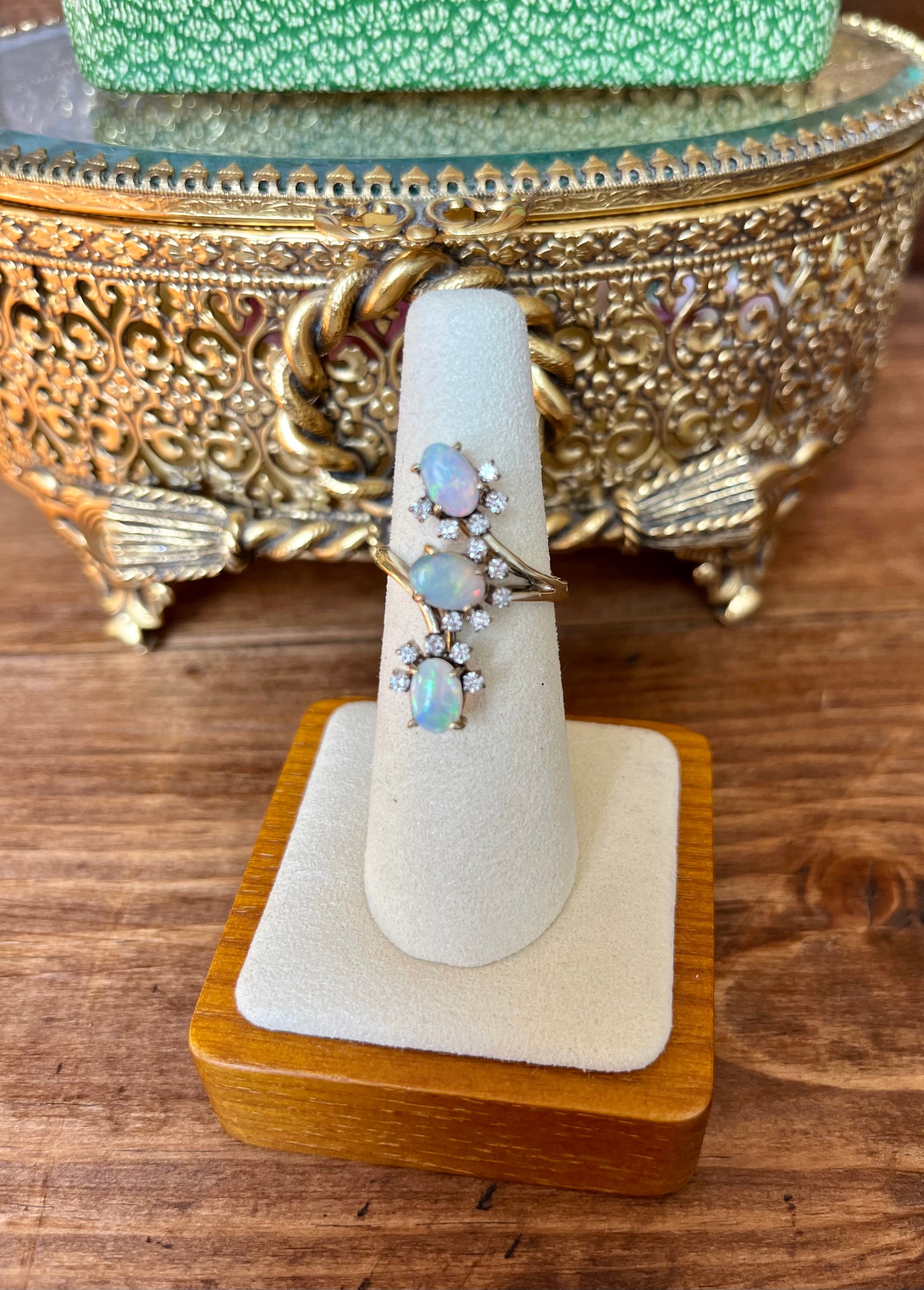 Vintage Three Opal and Diamond Ring